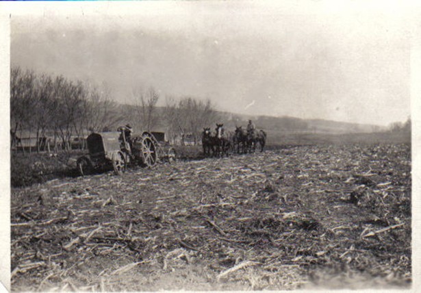 This is a photo of the first tractor my grandparents owned. They were fairly large landowners in the 1920-30s prior to losing everything in the Great Depression. While the official year and location of the picture is unknown, the conversations that it inspired during the subsequent family reunion indicated that the photo was taken in the late 1930s on the farm my grandparents were renting in Botna, IA. (I have previously written about my grandpa’s time in service here.)